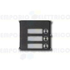 CAME BPT – PLAQUE FRONTALE POUR MODULE D’APPEL Ă 3 BOUTONS EN ALLIAGE DE ZAMAK PEINTE- COMPLĂTE AVEC SUPPORT EN POLYCARBONATE- ĂQUIPĂE DEÂ 3 V (42 X 10 MM)- DEGRĂ DE PROTECTION CONTRE LES CHOCS IK09Ă COMBINER AVEC UN MODULE D’APPELS (MTM8C OU MTM8C/200)Â PLAQUE FRONTALE POUR MODULEÂ D’APPEL 3 BOUTONSMTMF3PVRÂ 60020670