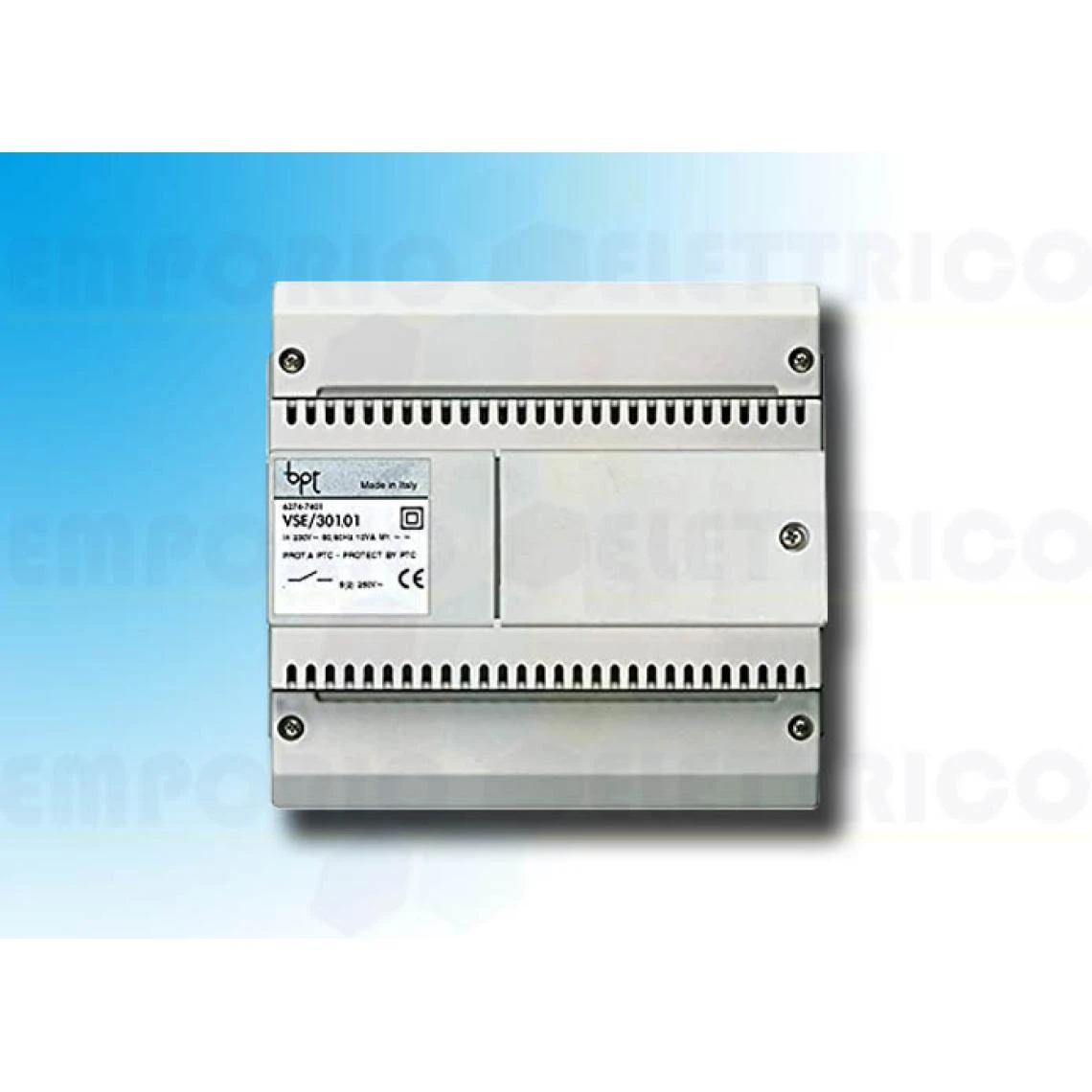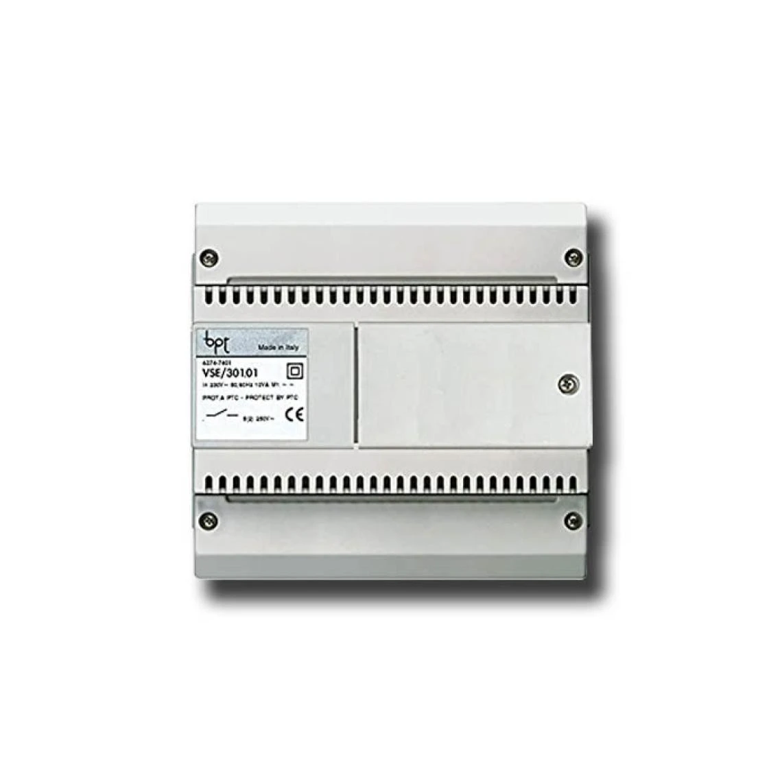 CAME BPT – SÉLECTEUR POUR INTERCONNECTÉS POUR SYSTÈMES X1.SYSTÈME X1- BOÎTIER EN PLASTIQUE POUR L’INSTALLATION DANS LES ARMOIRES DE COMMANDE (EN50022) ET DIMENSIONS 6 MODULES DIN BAS- IL PERMET LA CRÉATION D’UN GROUPE DE DÉRIVÉS INTERNES INTERCONNECTÉS EN MAINTENANT LA CONNEXION AVEC LA COLONNE PRINCIPALE ET EST CAPABLE DE FOURNIR L’ALIMENTATION SUR BUS AUX DÉRIVÉS INTERNES (20V DC – 800 mA MAX)- ÉQUIPÉ DE 4 BORNES DE CONNEXION IN/OUT DEPUIS LA COLONNE MONTANTE ET D’UN BOUTON POUR ENTRER DANS LA PROGRAMMATION ET POUR LE RESET DES DONNÉES EN MÉMOIRE- ALIMENTATION DE RÉSEAU ÉLECTRIQUE 230 V AC 50/60 Hz- DEGRÉ DE PROTECTION CONTRE L’EAU ET LA POUSSIÈRE IP30. VSE/301.01 62747401