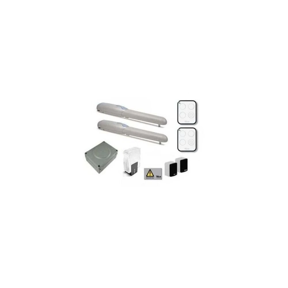 nice – kit de motorisation pour portails battants jusqu’Ă 2 mt, montage externe et Ă©quipĂ© d’une technologie bidirectionnellecondensateur intĂ©grĂ©, fin de course mĂ©caniques prĂ©assemblĂ©s sur la phase d’ouverturewingo4kit bd    wingo4bdkceil comprend:- 2 wg4000 motorĂ©ducteurs Ă©lectomĂ©caniques 230 vac Ă montage externe avec dĂ©verrouillage par clĂ© nice et fin de course en ouverture- 2 on3ebd émetteurs 433,92 mhz 3 canaux, bidirectionnels- 1 mc800 unitĂ© de contrĂ´le intĂ©grĂ©e et rĂ©cepteur radio bidirectionnel enfichable oxibd inclus- 1 epm paire de photocellules extĂ©rieures- 1 elac clignotant Ă led avec antenna intĂ©grĂ©e- 1 ts plaque portail