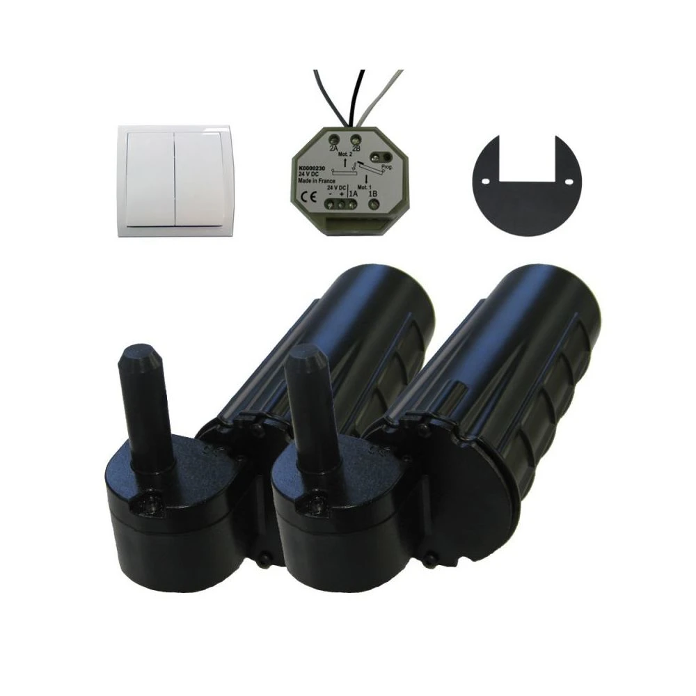 Double motorisation encastrée pour volet 1 battant droit URANUS filaire – gond Ø 14.