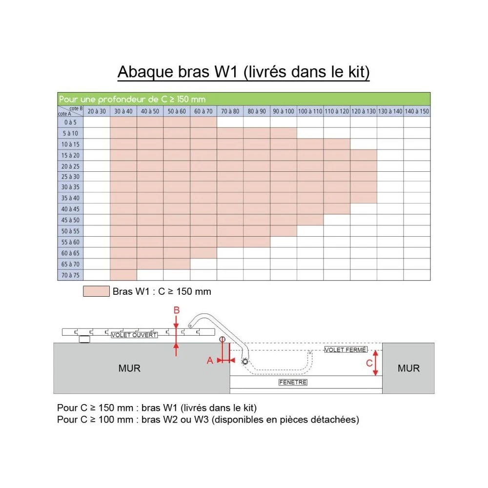 Bras permettant l’utilisation d’une motorisation WINEO pour une profondeur minimale de 150 mm.
