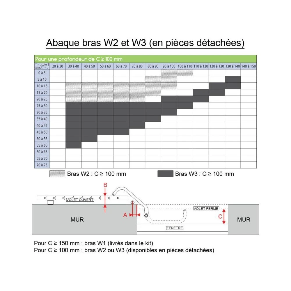 Bras permettant l’utilisation d’une motorisation WINEO pour une profondeur minimale de 100 mm.