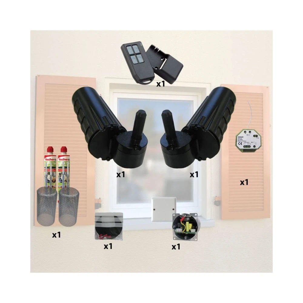 Pack motorisation encastrée pour volets 2 battants URANUS Radio – gond Ø 14 + 1 kit résine + 1 alimentation.