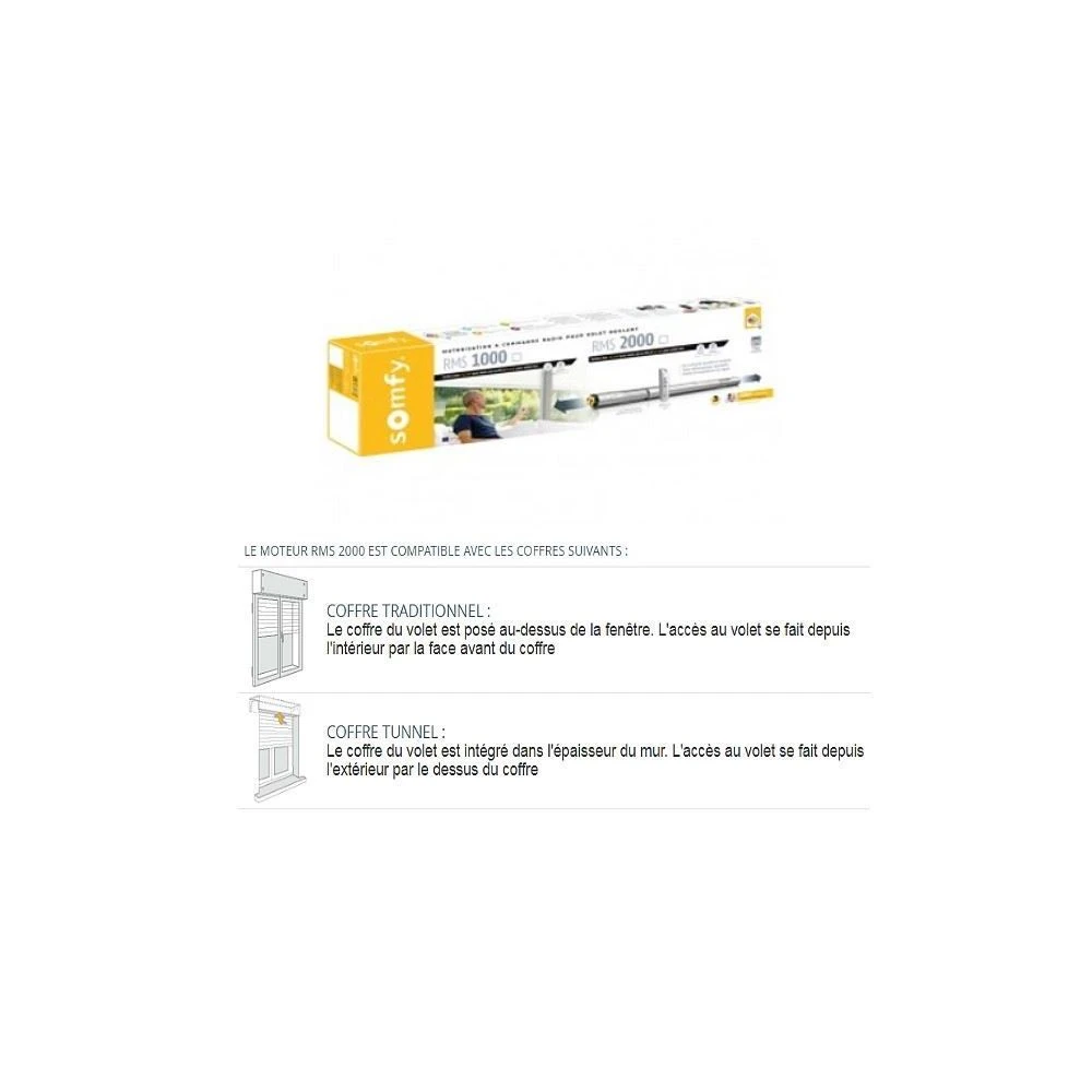 Points forts Somfy Axe motorisĂ© / kit de motorisation radio RMS 2000 pour volet roulant tradi ou tunnel RTS – SOMFY –