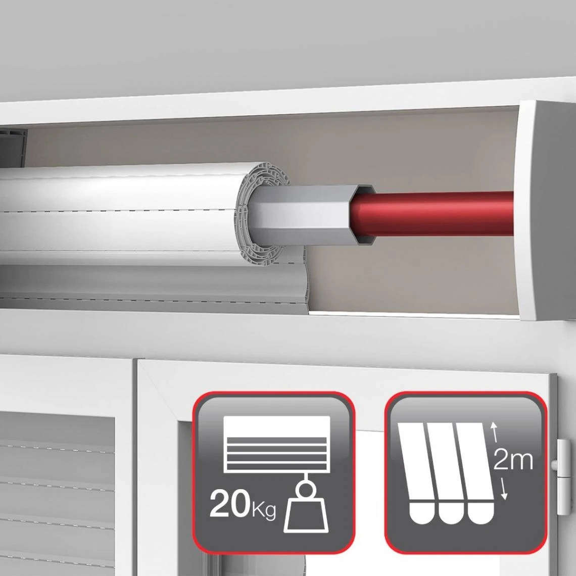 Le kit de motorisation 6Nm — Thomson est compatible avec un tube octogonal d’un diamètre de 40 mm servant de support Ă un store enroulĂ© ou Ă un volet roulant pesant tout au plus 20 kg. Quant aux gabarits, vous ne devez pas dĂ©passer une surface de :
